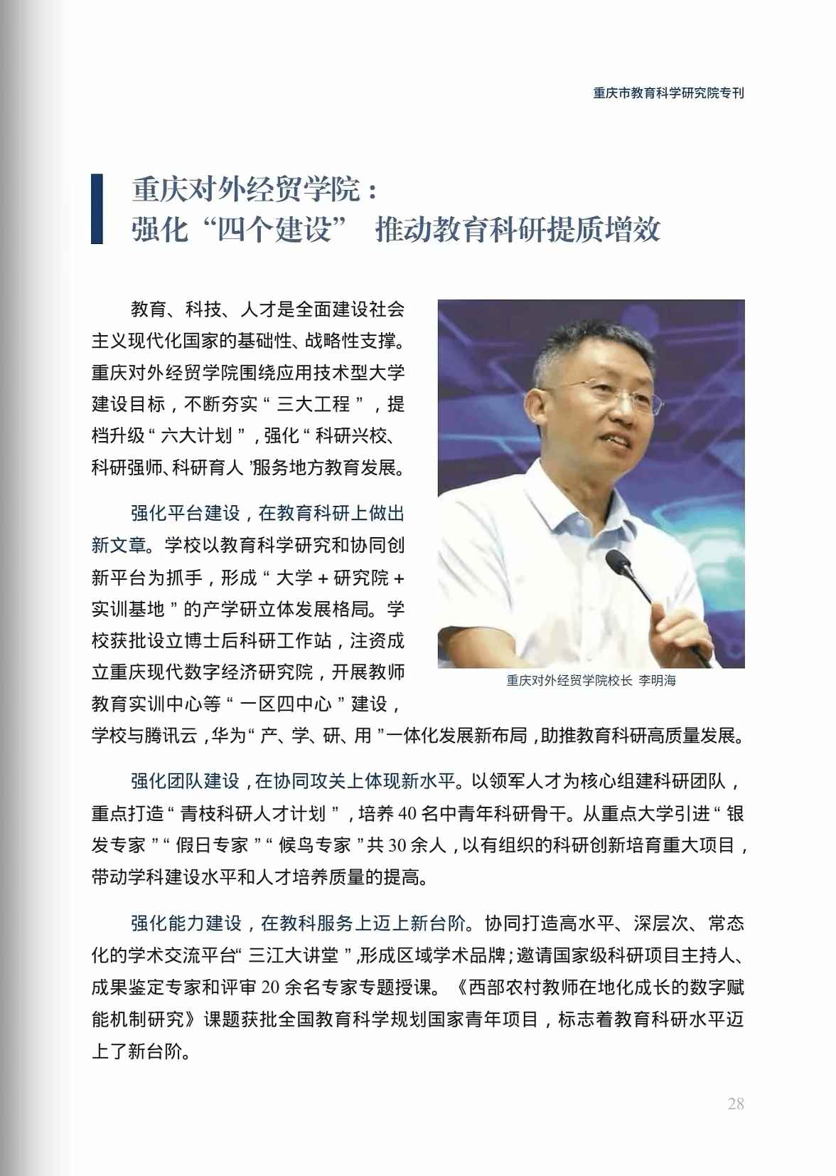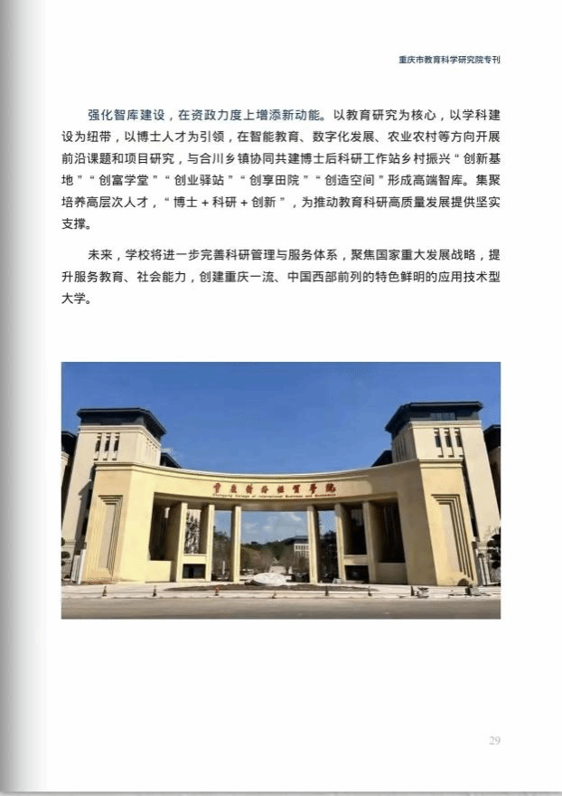 2024年5月15日,重庆市教育智库联盟《教育智库》专刊发表《ok138cn太阳集团:强化四个建设,推动教育科研提质增效》科研建设成果报道。培元致新,学校以高质量科研支撑重庆教育强市、激活重庆建设新动能。