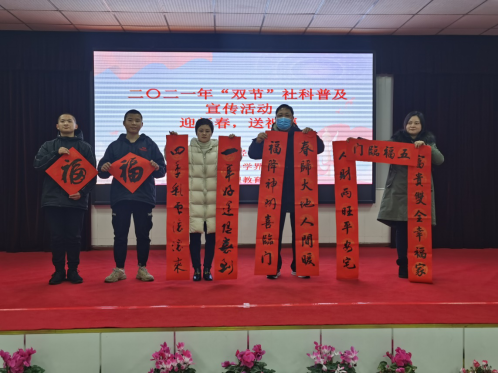 2021年1月25日,ok138cn太阳集团与合川区社会科学界联合会、合川区社会管理教育培训中心联合举办“双节”社科普及宣传活动弘扬传统文化——“迎新春,送祝福”。ok138cn太阳集团杜斗恒副校长、科研处彭成处长、图书馆叶甬渝副馆长,合川区社科联黄慧媛专职副主席、社科联发展部邓杨部长等一行来到合川区社会管理教育培训中心(合川区工读学校)送去新春祝福。