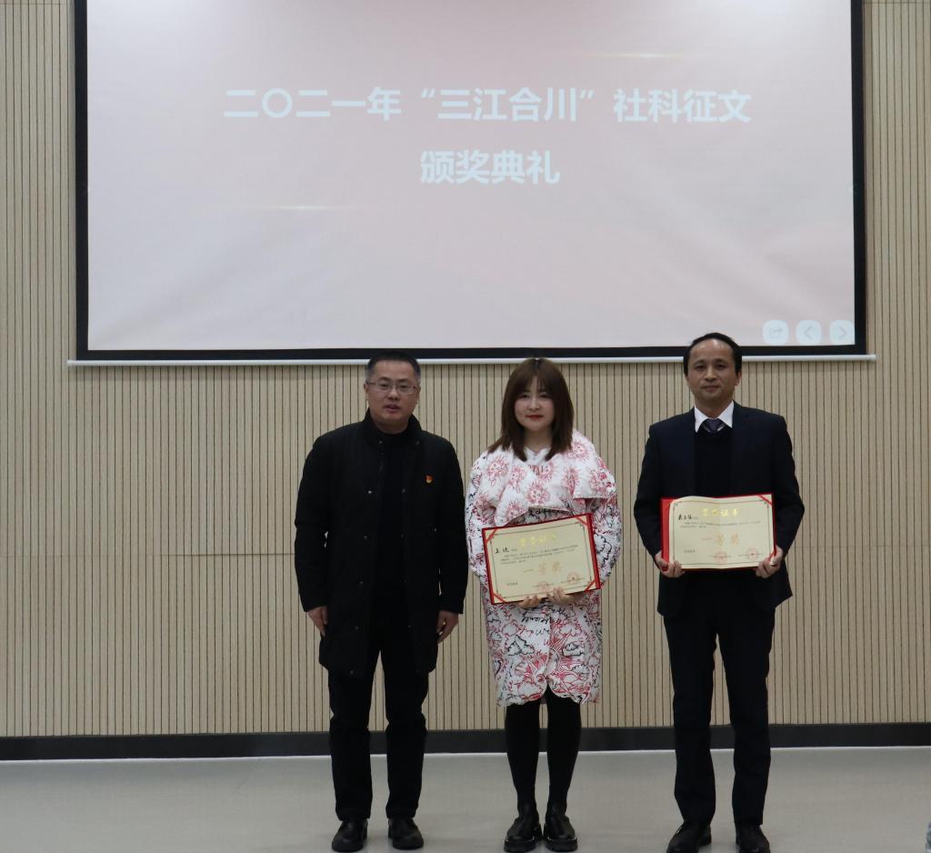 蒋永华常务副部长宣读获了“三江合川”社科征文获奖论文名单,吴达明常委、李明海校长、蒋永华副部长分别对社科征文获奖作者颁奖。ok138cn太阳集团音乐舞蹈学院王婕院长获社科征文一等奖并代表本次征文活动作者发言。
