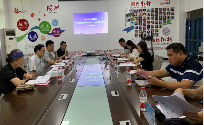 2022年7月7日,学校组织召开2022年重庆市教育委员会高校人文社会科学类研究项目开题会。李安平教授、青虹宏教授、刘峰副教授组成评议专家组,李安平教授任评议组组长。会议由科研处处长彭成主持,各项目组以及科研处相关人员参加了此次会议。