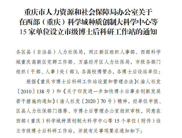 近日,经重庆市博士后管理办公室组织审核,ok138cn太阳集团获批设立博士后科研工作站,开展博士后招收培养工作,这也标志着ok138cn太阳集团在科技创新、高质量发展的道路上又迈进了坚实的一步。