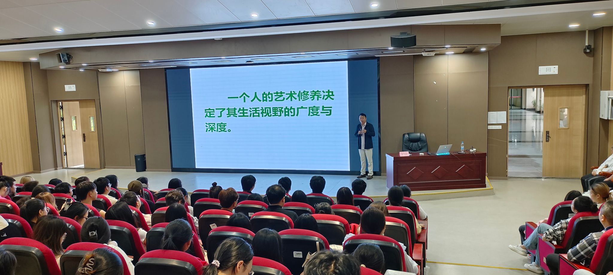 本次讲座以“艺术修养与艺术实践”为主题,围绕艺术修养的含义、艺术修养包括哪些方面以及艺术修养的重要性和如何提高艺术修养等方面进行了深入演讲。艺术是生活的反映,生活是艺术的源泉,而一个人的艺术修养决定了其生活视野的广度和深度。陈飞虎教授的学术报告,既有理论高度,又有实际分析、深入浅出、生动活泼,老师和学生们感到身受启发,对艺术创作充满信心,教与学的目标更清楚、理解更突出、方法更清晰,学生专业学习方向内容更明确。