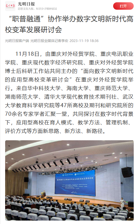 光明日报:《“职普融通”协作举办数字文明新时代高校变革发展研讨会》