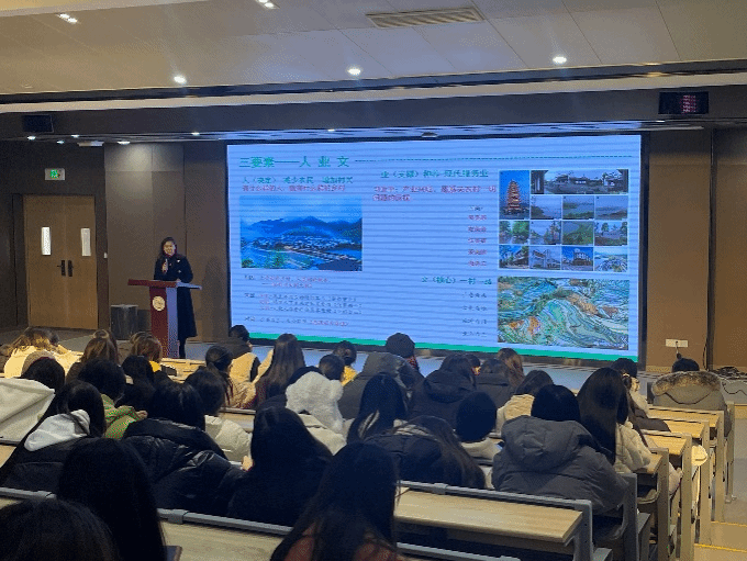 在讲座中,黄教授通过介绍英国、韩国的新乡村运动、日本的造町运动等案例,展示了乡村振兴的多元化路径。她分享了在旅游扶贫领域的实践,强调了乡村振兴的趋势和需求。黄教授通过“四个维度”:国际课题、时代命题、乡村振兴、核心建议,深刻阐述了关键因素,并提出了实践指导,如六风、十好、四态和五子。最后,她分享了乡村产品的六风和产业融合的十好,还介绍了包括乡村直播带货在内的十种创新模式。黄教授鼓励同学们积极参与乡村振兴,为实现中国梦贡献力量。