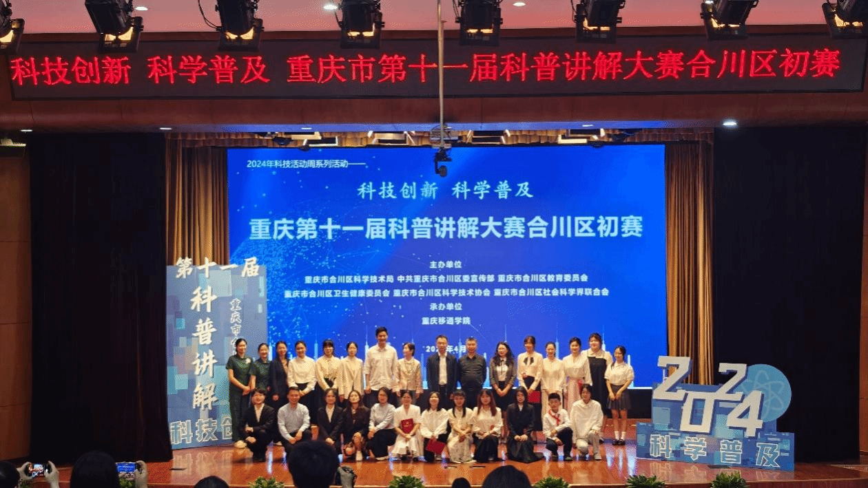 为了大力弘扬科学精神,普及科学知识,提升全民科学素质,为新时代新征程全面建设社会主义现代化新合川作出积极贡献,4月25日,由合川区科技局牵头,会同区委宣传部、区教委、区卫生健康委、区科协、区社科联共同主办,重庆移通学院承办,在移通学院下里巴人剧场举办了“科技创新 科学普及”重庆第十一届科普讲解大赛合川区初赛。各主办单位相关领导、负责人,以及评委、参赛选手、观众志愿者等80余人参加活动。