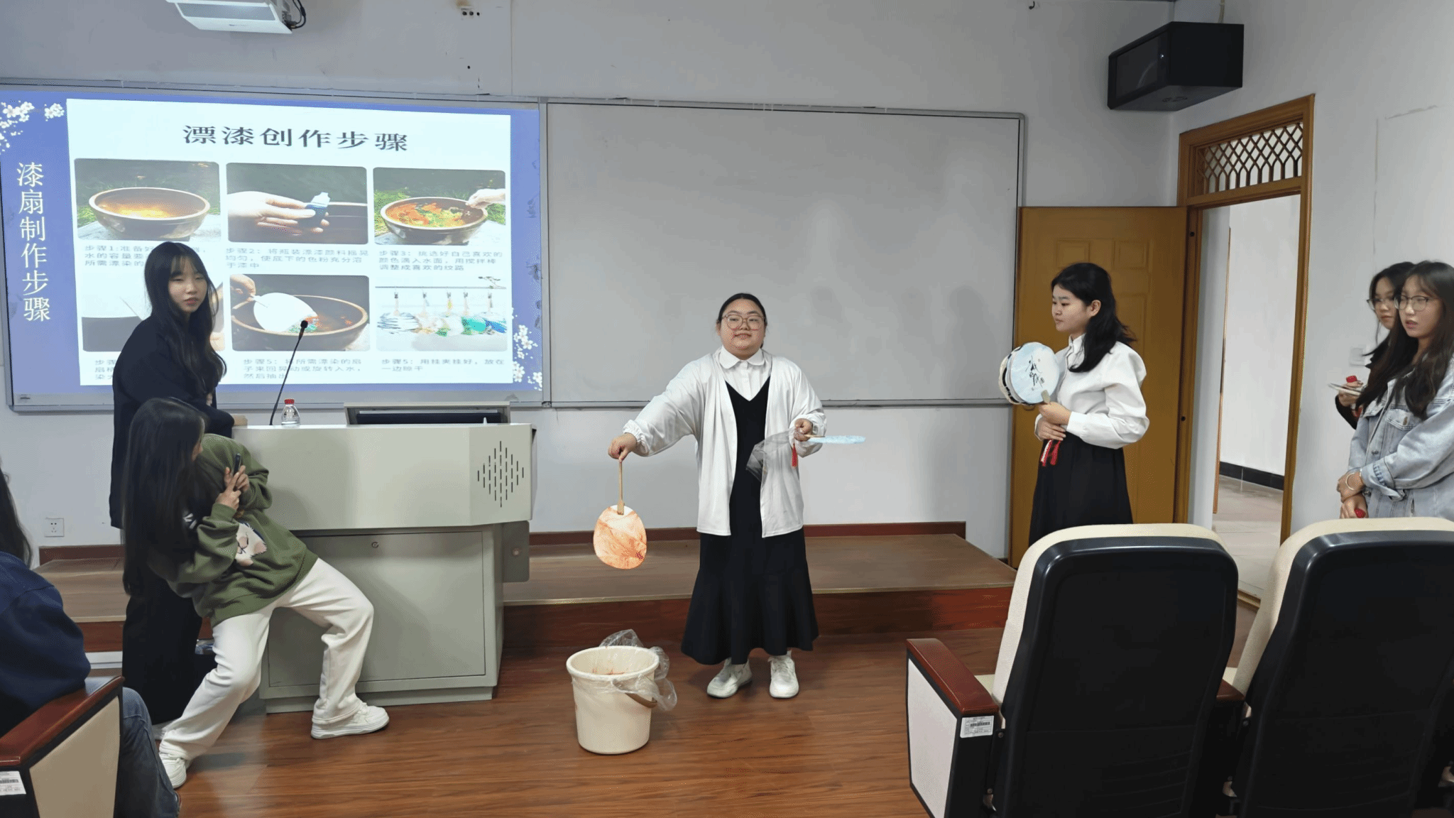 随后,陈珑婧同学上台向大家展示其在非遗文化学习中的成果与心得——漆扇。她将漆扇的制作带到了现场,向同学们展现了非遗技艺的精湛与细腻,以及非遗文化的独特韵味。