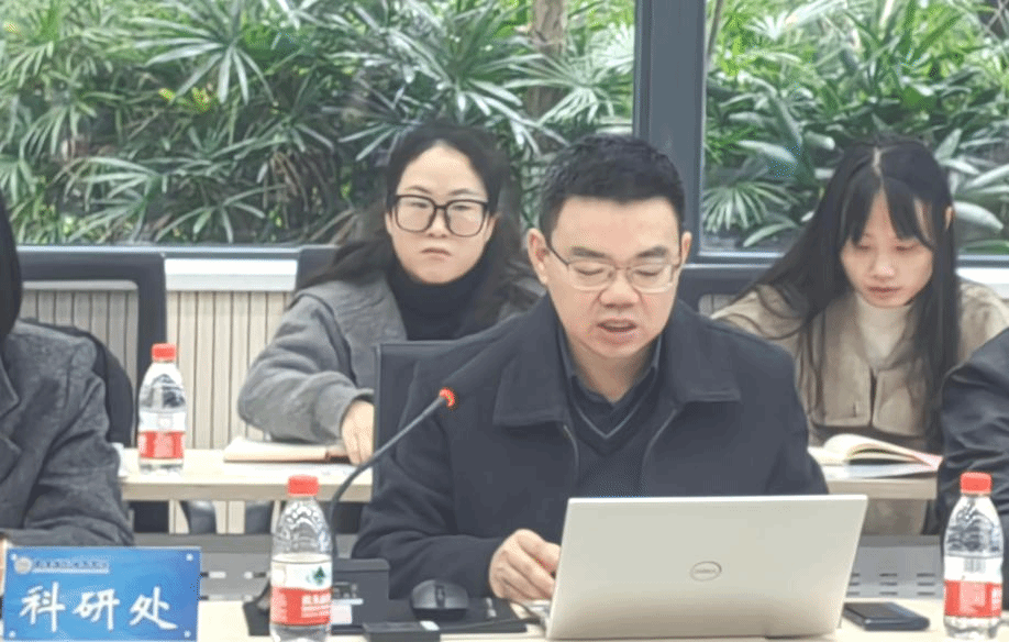 科研处彭成处长汇报了博士后科研工作站创建国家级博士后科研站情况及近期科研工作情况,对各二级学院申报国家社科基金、教育部人文社会科学研究项目等情况进行了通报,提出了科研工作的推进离不开优秀人才的支撑,而人才的成长又依赖于科研平台的搭建。他表示,希望各学院积极推荐各类优秀人才,助力学校创建国家级博士后科研站,让人才在良好的学科科研环境中施展才华,产出高质量科研成果,实现人才、学科与科研的相互促进与共同提升。