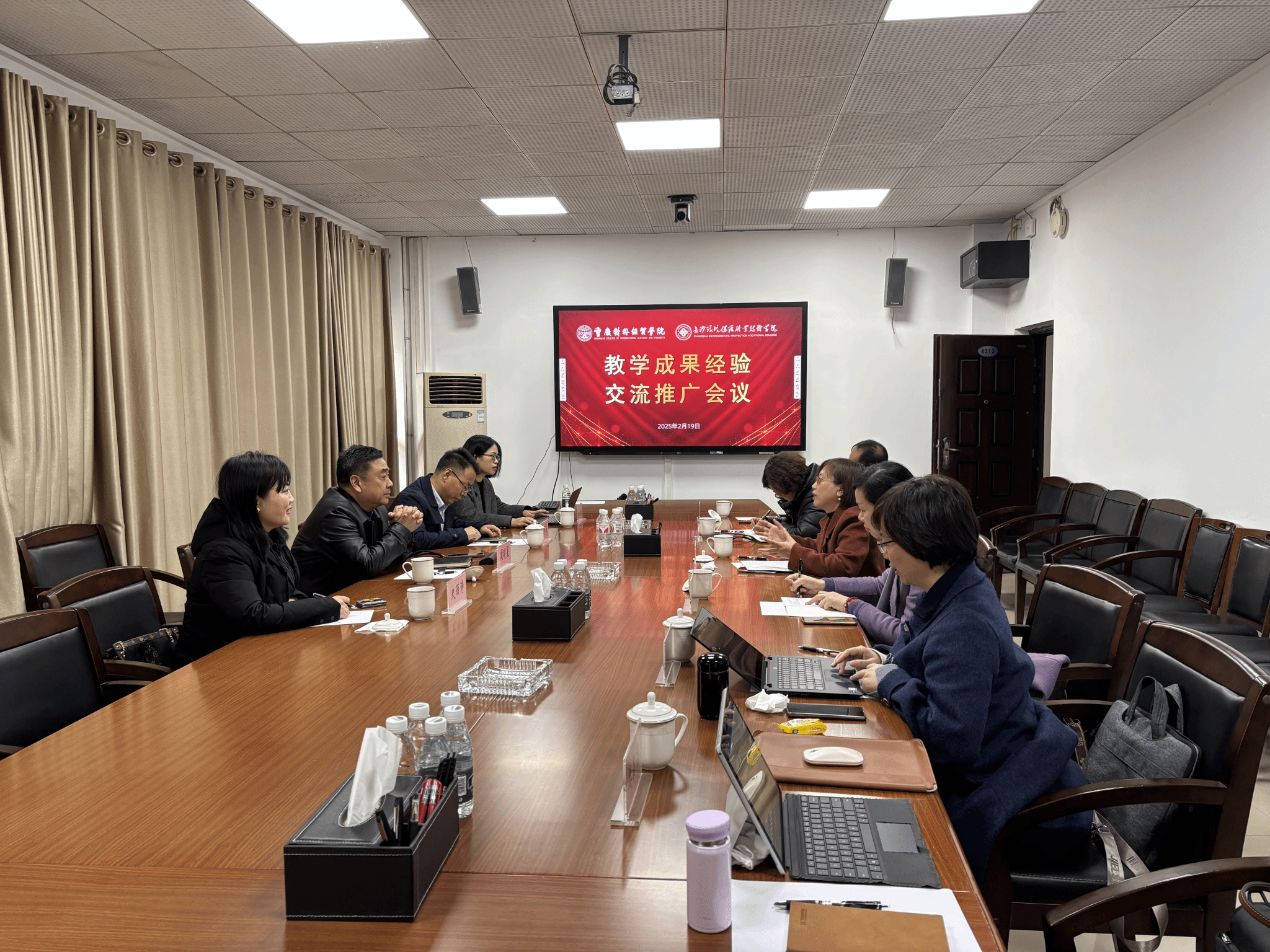 2025年2月19日,为更好地培育和凝练教学成果,进一步提升教学成果奖申报质量,促进校际教学成果经验交流,助推教育高质量发展,学校邀请长沙环境保护职业技术学院来校开展教学成果经验交流活动。副校长周明星、宣传部、科研处、学科建设办公室、职业学院参加会议。