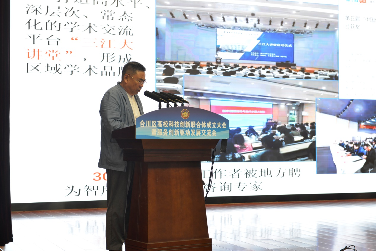 服务创新驱动发展交流会上,周明星副校长进行主题发言,强调服务地方经济社会、协同创新特色突出,一是,加强平台建设,在数字科技上做出新文章;二是,加强团队建设,在协同攻关上体现新水平;三是,加强能力建设,在科技服务上迈上新台阶;四是,加强智库建设,在资政力度上增添新动能。学校将积极推进“合川区高校科技创新联合体”建设,开展全要素、广渠道、多形式的产学研合作,完善科研管理与服务体系,加强科研团队与科研平台建设,聚焦国家重大发展战略,提升服务经济社会能力,创建重庆一流、中国西部前列、在“一带一路”有重要影响力的财经类应用技术型大学。