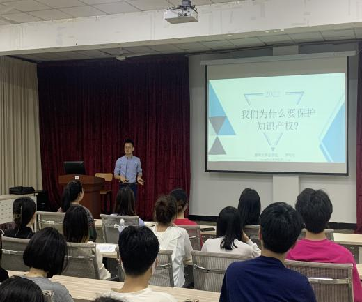 今年知识产权宣传周以“全面开启知识产权强市建设新征程”为主题。罗明东博士取材现实生活,通过图片通俗生动地,分点介绍了知识产权相关知识,给学生讲解了保护IPR的实质和加强共识等知识产权保护知识。