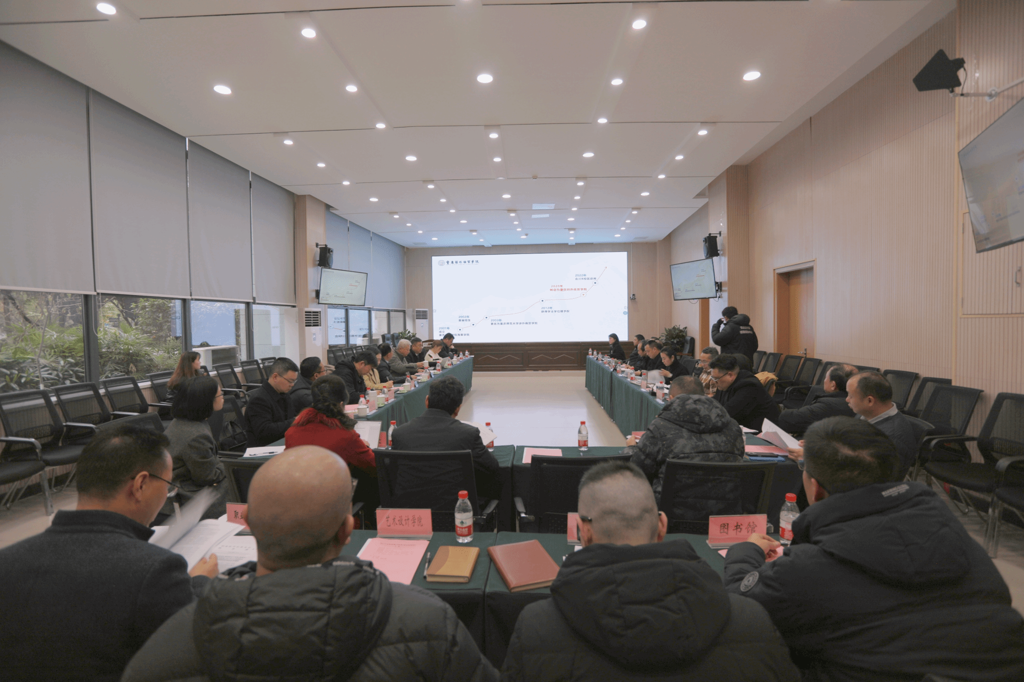 第二阶段为座谈会。校领导、驻校理事、各二级学院院长、党政办、学科建设办公室、科研处、人事处、发展规划处、教学评估办公室、教务处、财务处、信息技术中心、后勤处、图书馆参加会议。会议由孙泽平校长主持。